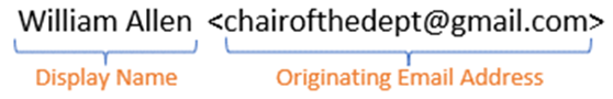 The FROM address of an email is in two parts, the Display Name and the Originating Email Address.